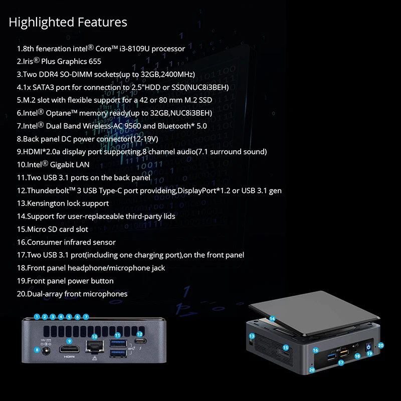 Product Name: Intel NUC NUC8i3BEK Mini PC Dual-Core I3-8109U DDR4 M.2 SSD Windows 10 Pro Wifi Bluetooth 4K Büro Gaming Mini Desktop-Computer